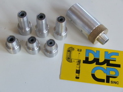 Pistola di sabbiatura per macchine a pressione composta da: corpo pota ugello in lega di alluminio, ghiera di fissaggio in ottone, ugello diametro 7mm in materiale antiusura rivestito. kit di ugelli di vario diametro e lunghezze.