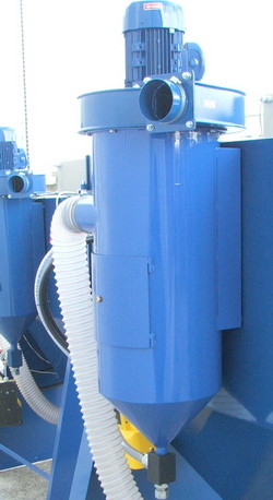 II Ciclone potenzia l'aspirazione della polvere e filtra le impuritą derivanti dalla pulitura del pezzo. Inoltre separa le microsfere rotte, non pił utilizzate, da quelle intere che vengono rimesse in circolo. Viene impiegato allo scopo di ottenere una migliore finltura della superficie del pezzo trattato.