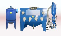 DESCRIZIONE IMPIANTO SAF-P2300 La SAF-P2300 č un impianto a pressione adatto per sabbiare o pallinare in modo rapido e incisivo per diverse categorie di lavoro: industrie di fonderie, carpenterie, tornerie, vetrerie, stampisti, modellisti del settore della gomma e del carbonio, industrie tessili "pelle e jeans". L'impianto e di tipo modulare fomato da tre unitą: La prima, l'armadio filtro(mod.SAF-AC1000) per il recupero e l'abbattimento delle polveri create nella cabina di lavoro, la seconda č formata dal gruppo pressione composto da un serbatoio e da un ciclone (mod.SAF-P30) Che permette la compressione e la miscelazione dell'aria e della graniglia (sferica o angolosa) a seconda se si deve sabbiare o pallinare, il ciclone posto sopra il serbatoio, preleva e filtra l'abrasivo usato separandolo dalla polvere generata dallo sparo all'interno della cabina di lavoro. Il serbatoio č corredato di: un regolatore pneumatico di pressione da un minimo 2bar a un massimo di 10 bar, un filtro condensa, una valvola di sicurezza a normativa P.E.D. , una valvola di apertura sparo di elevata portata d'aria, una valvola a fungo, una speciale valvola per lo scarico di nostra progettazione, valvola di regolazione flusso abrasivo manuale. Per ultima una cabina di lavoro pezzi manuale (mod.SAF-2300) rivestita in gomma speciale del tipo antiabrasivo composta da due porte laterali costruite in modo particolare per eseguire la sabbiatura anche ai lati della macchina. doppio vetro antisfondamento, piano di lavoro (optional: rulliera di trasporto, tavola rotante fissa, carrello estraibile con tavola rotante (mod.SAF-FT13). Un impianto di illuminazione, una tramoggia di recupero abrasivo, guanti di grande dimensione montati sulle porte e sulla parte anteriore, una pistola di sabbiatura a pressione completa di ugello in metallo antiabrasivo, un pedale elettrico per comando differenziato dello sparo, una pistola di pulizia. L'impianto č interamente progettato e costruito nello stabilimento della ditta Due C.P. sito in Caldogno via F. Petrarca, 14 int. 1 (Vicenza). Tutti gli impianti sono collaudati secondo la normativa P.E.D. di III° categoria, con marchiatura CE, completa di dichiarazione di conformitą e del manuale di istruzioni per l'uso. | Carrello estraibile con tavola rotante SAF-FT13 | |